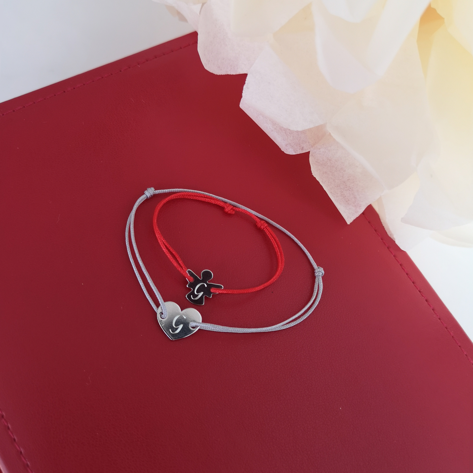 O bratara personalizata cu initiala si ingeras din argint, va fi cu siguranta un cadou apreciat. Snur ajustabil din matase. Sistem de inchidere cu noduri.