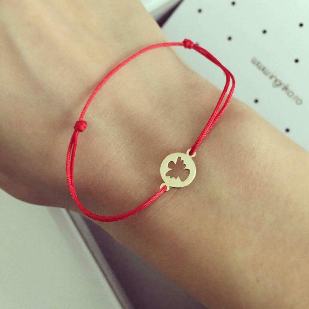Aceasta bratara cu snur rosu si banut din aur imbina semnificatia traditionala cu un design modern si rafinat.