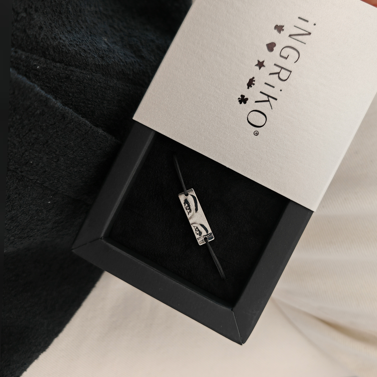 Pentru a personaliza aceasta bratara iNGRiKO, incarca o fotografie clara cu chipul persoanei dorite. Poti alege culoarea snurului si sa adaugi un mesaj gravat pe verso, pentru o nota si mai personala.