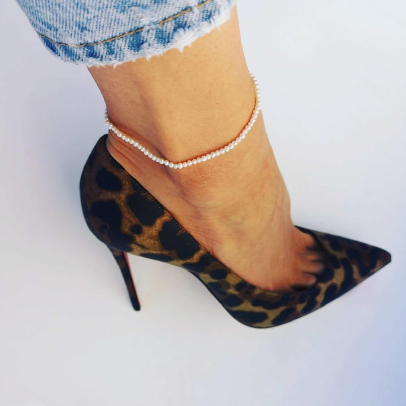 Bratara cu perle de cultura pentru glezna, din aur galben 14K