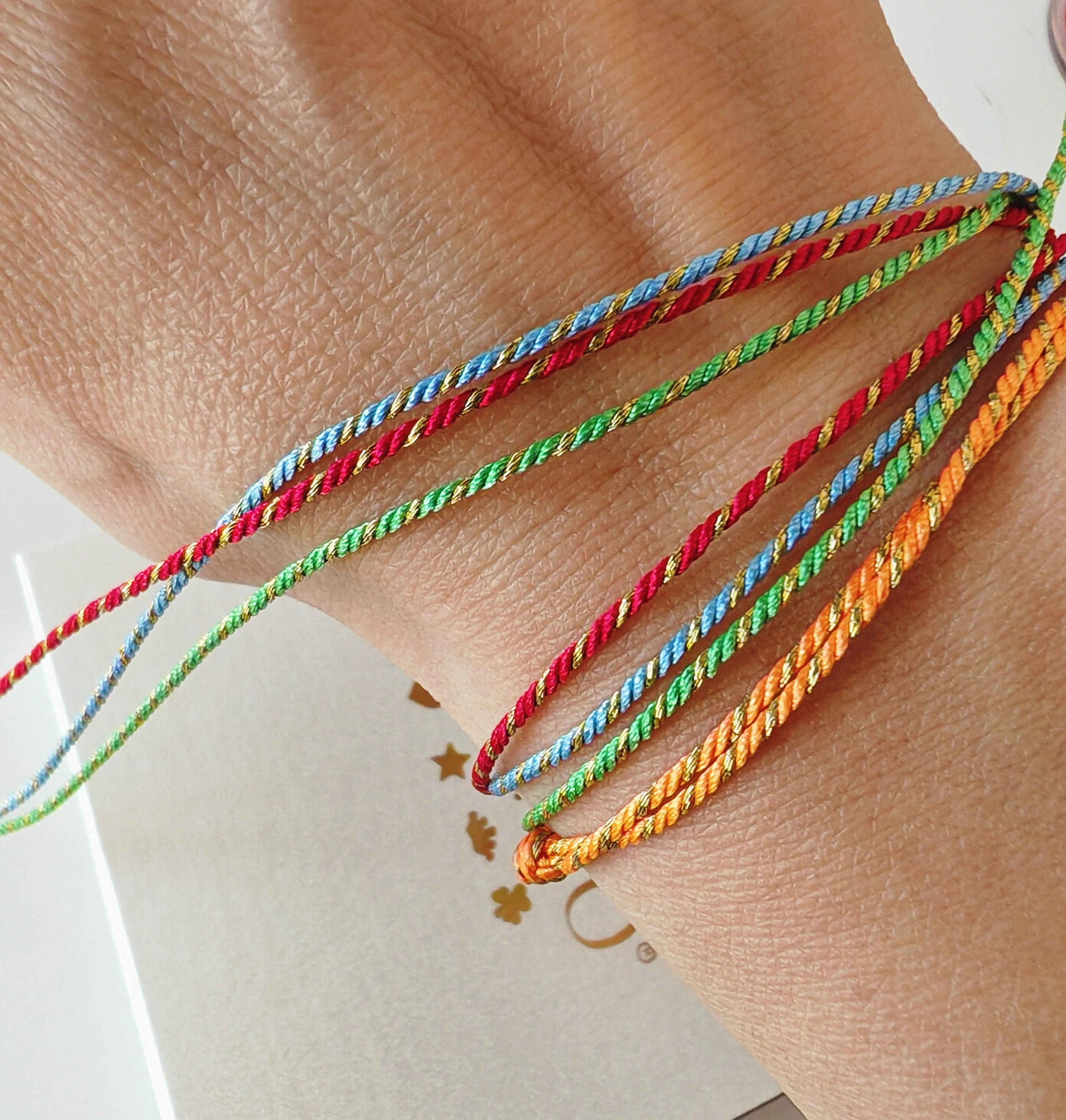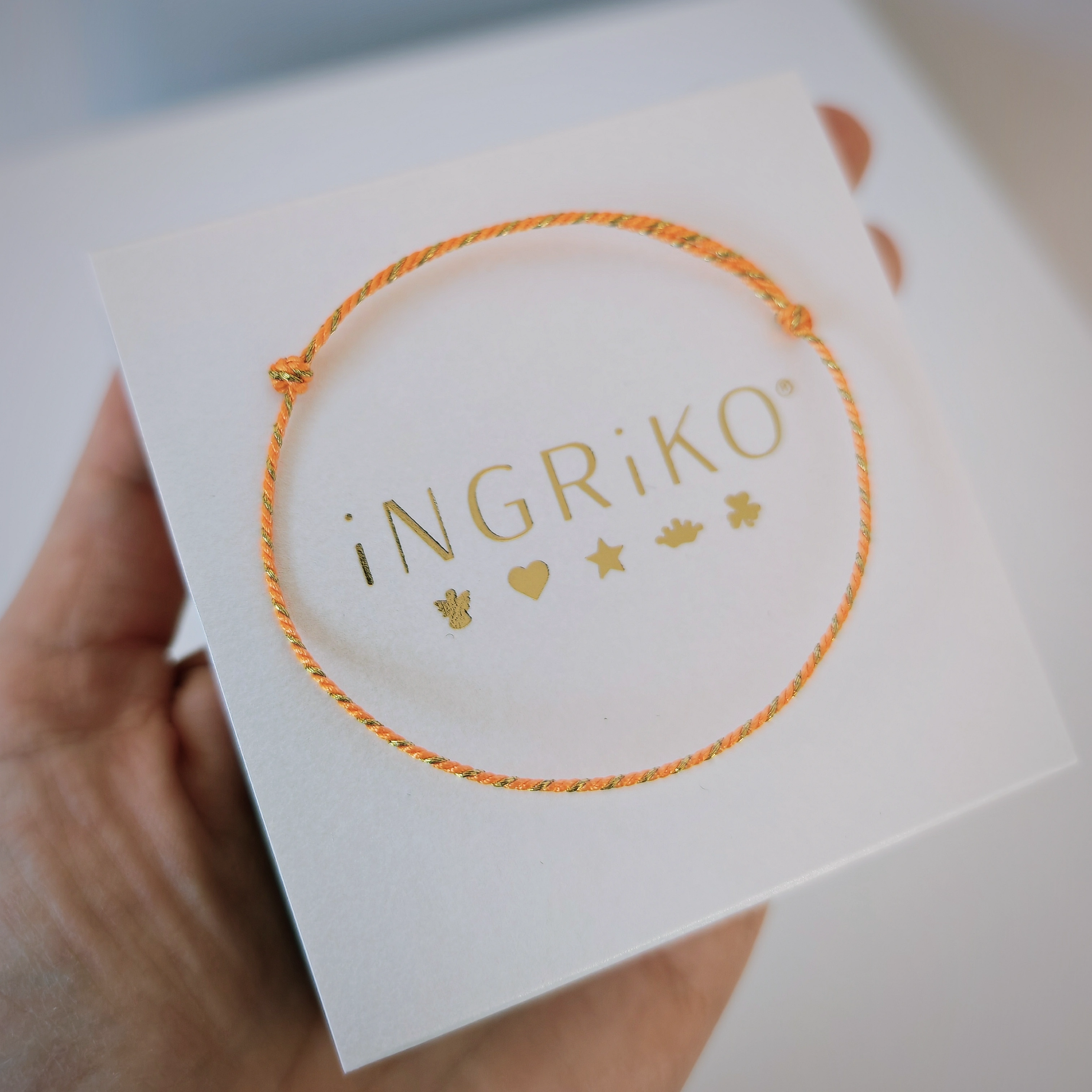 Adaugă un strop de culoare și eleganță în colecția ta de bijuterii cu această brățară reglabilă cu șnur auriu, disponibilă în patru nuanțe vibrante. Creată cu grijă în atelierele Ingriko, fiecare brățară este o declarație de stil și rafinament.