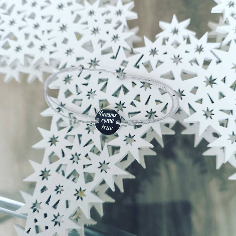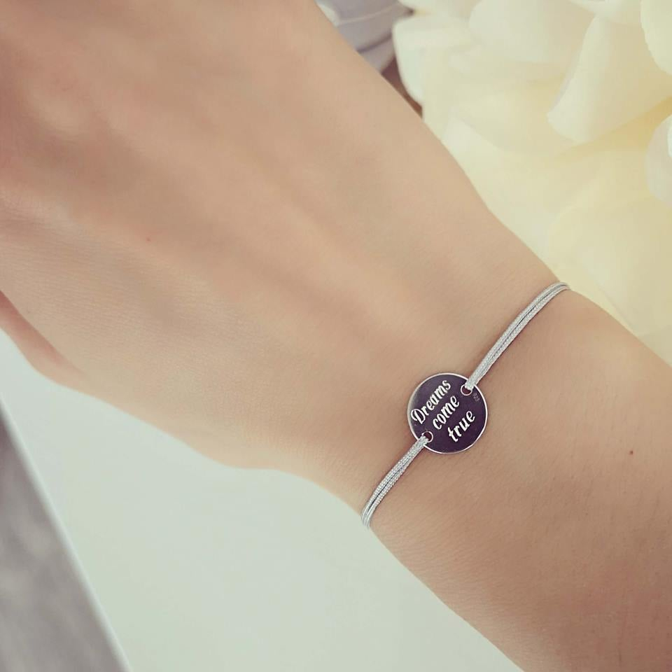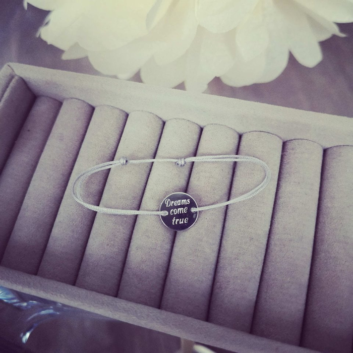 Crede în visurile tale și ele se vor îndeplini. Brățara cu șnur și bănuț din argint 925 gravat „Dreams come true” este mai mult decât un accesoriu – este un mesaj care te însoțește în fiecare zi.