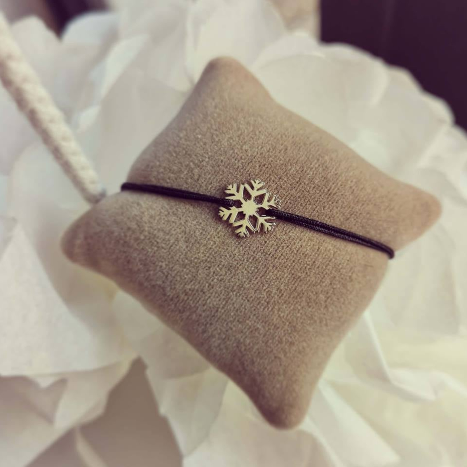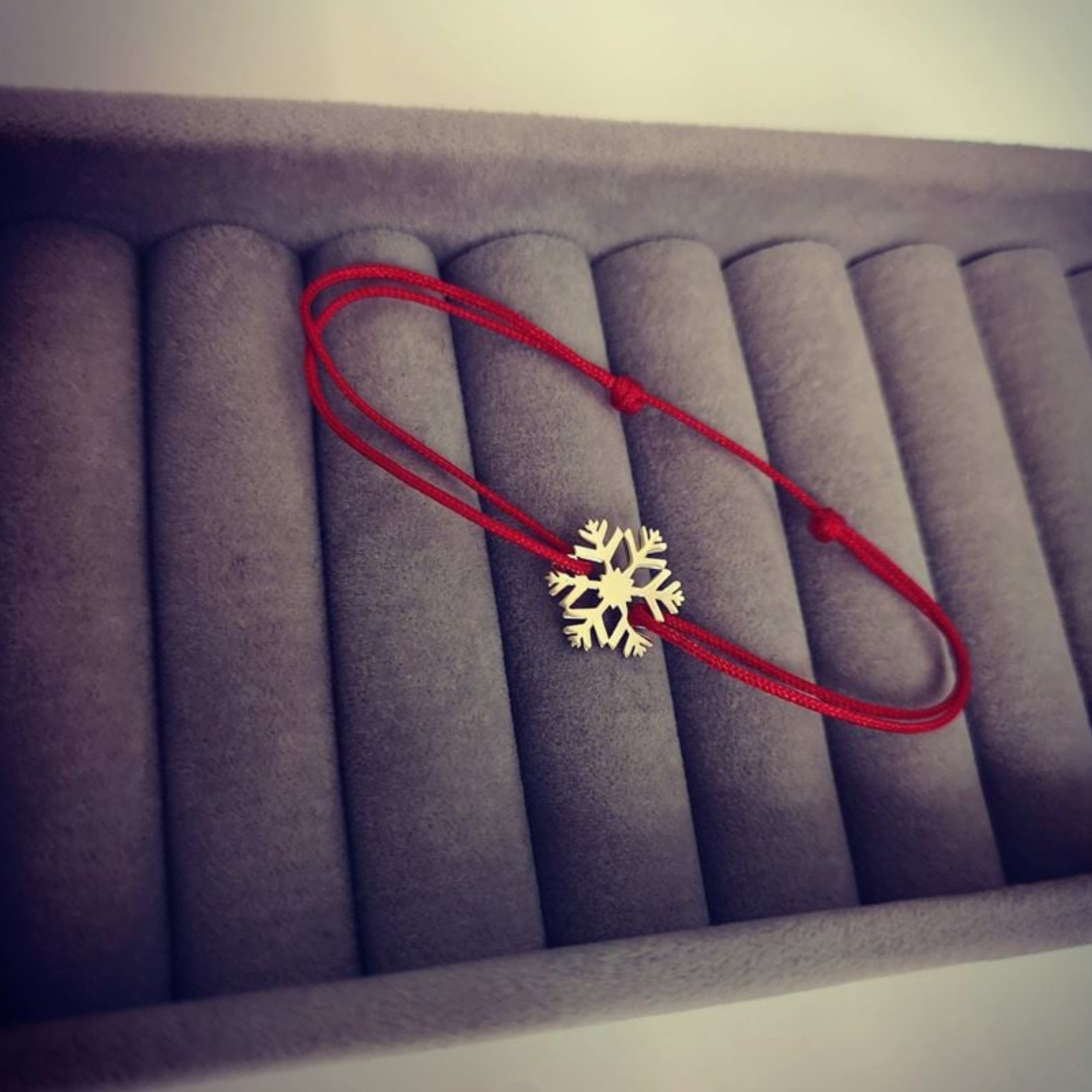 Brățară șnur aur 14K cu fulg de nea – simbolul iernii și al bucuriei