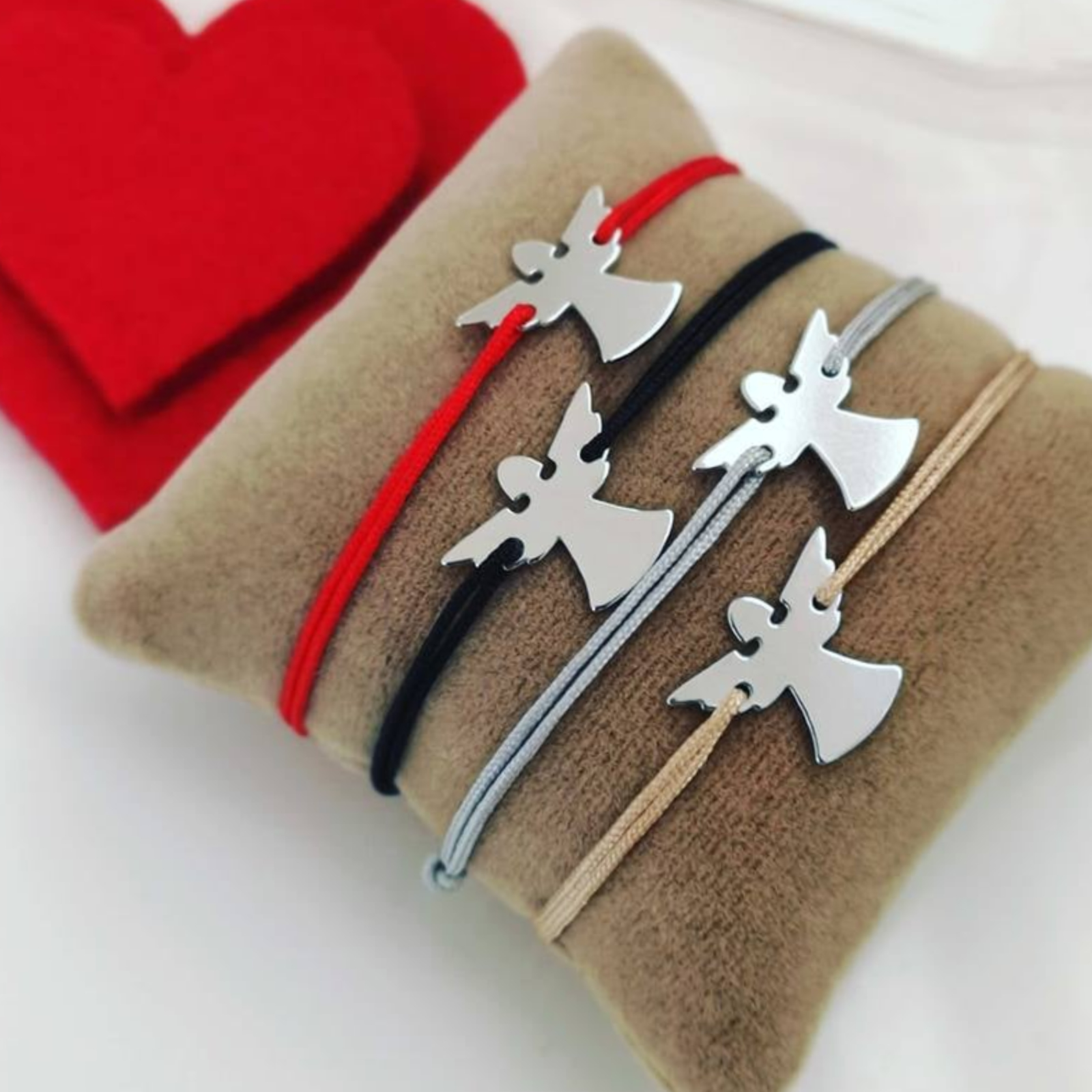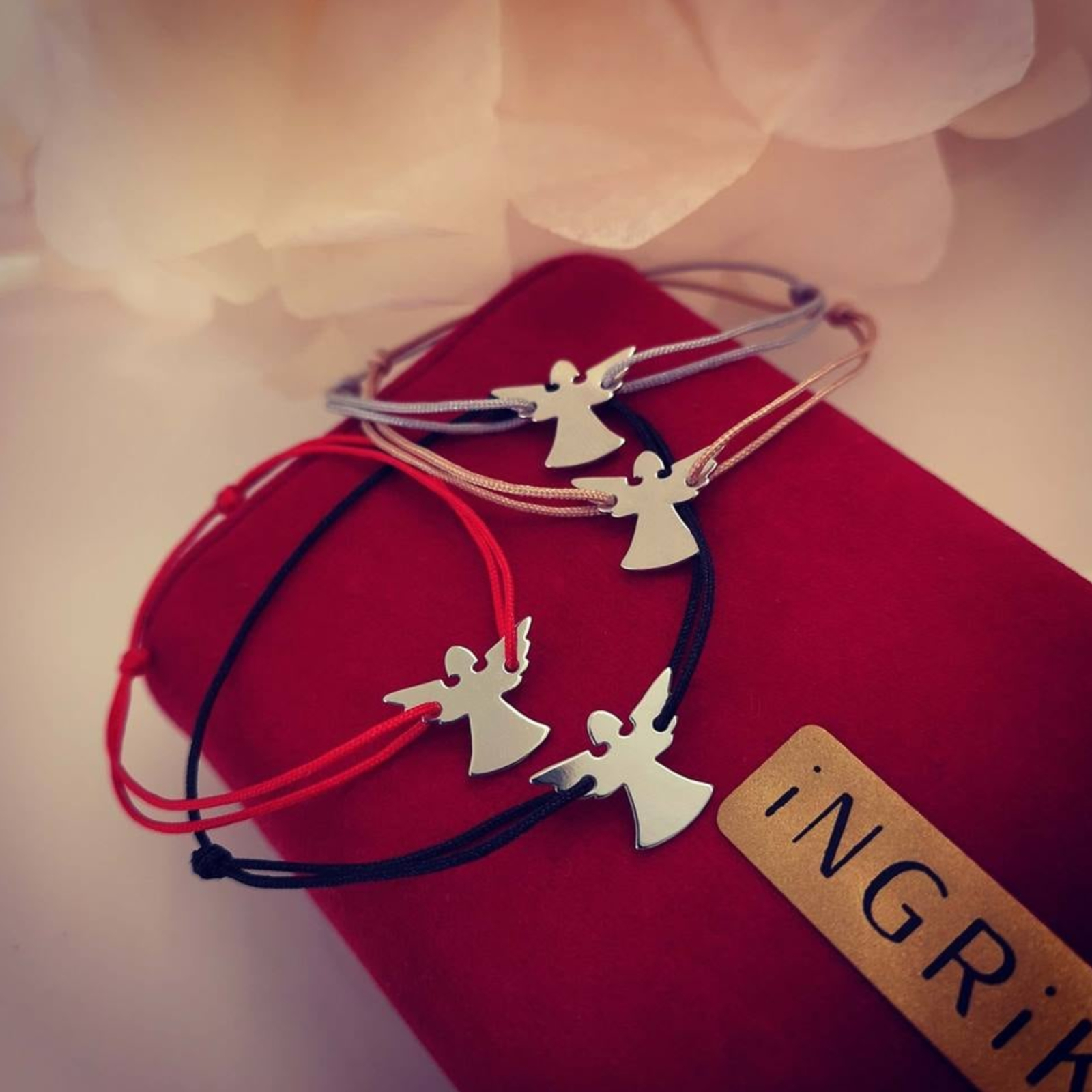 Un Inger protector...o bratara de suflet. Snur ajustabil din matase. Sistem de inchidere cu noduri. Acest model se poate grava cu pana la 3 initiale sau un simbol: inima/stea/trifoi.