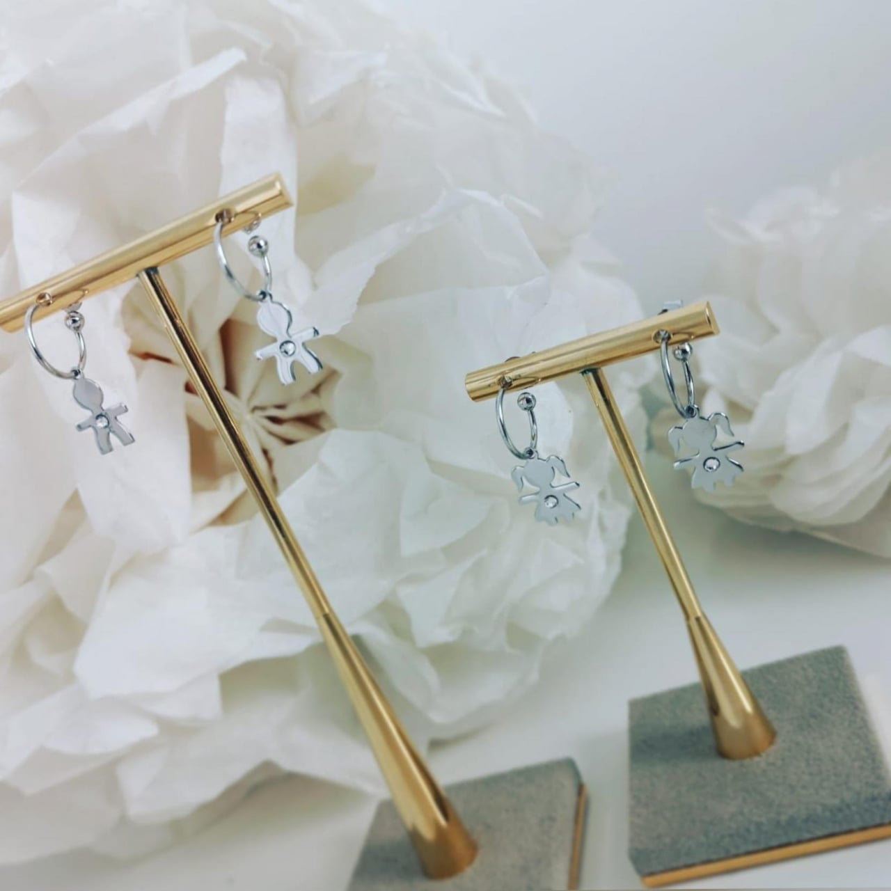 Alege perechea de cercei din argint pentru dama, cu fetita si baietel pentru colectia proprie sau daruieste-i unei persoane dragi, careia vrei sa ii aduci un zambet. Lucrati si finisati manual, din Argint 925 rodiat.