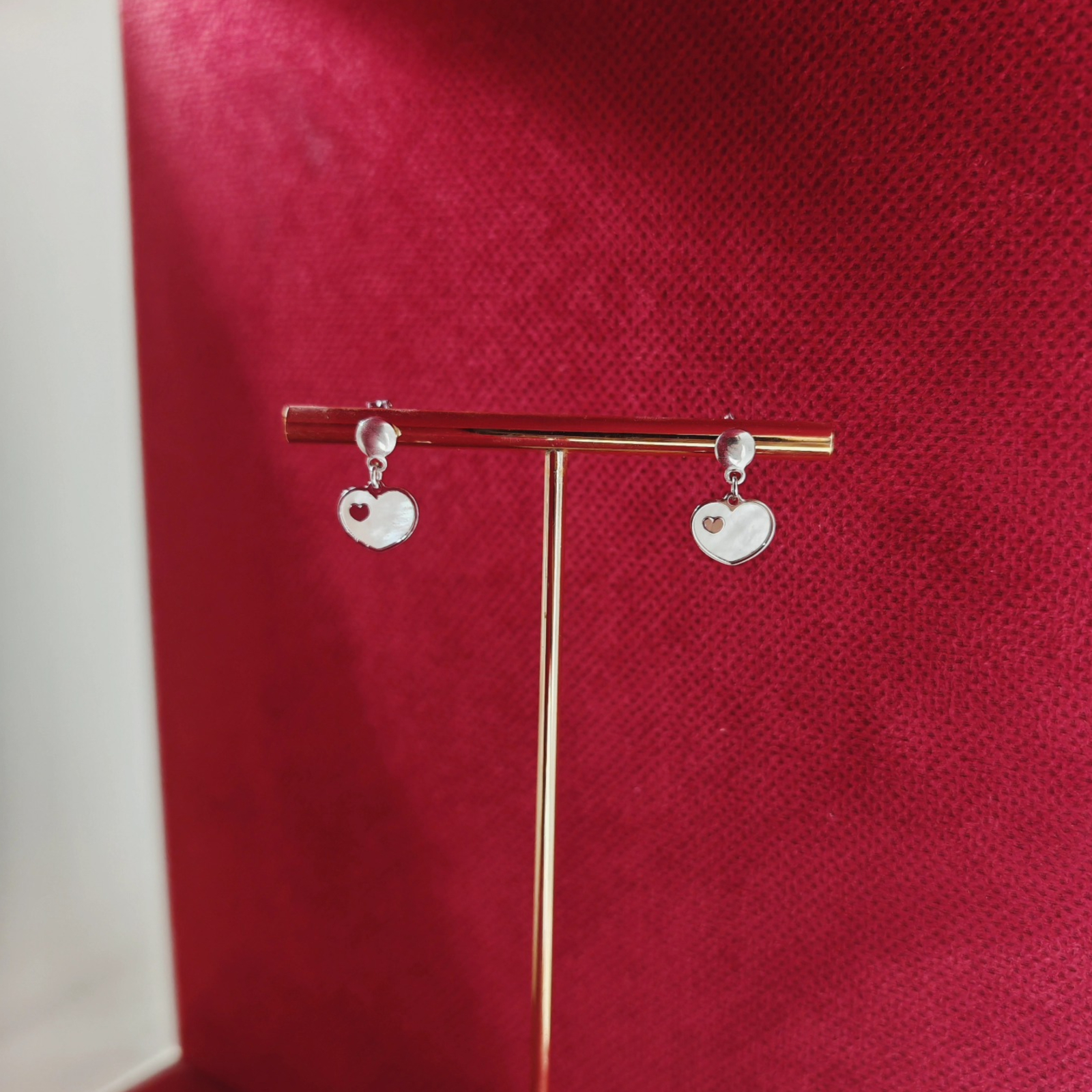 Cercei argint inimioare cu sidef, delicati si eleganti, perfecti pentru femei. Ideali pentru cadouri sau pentru a completa orice tinuta rafinata.