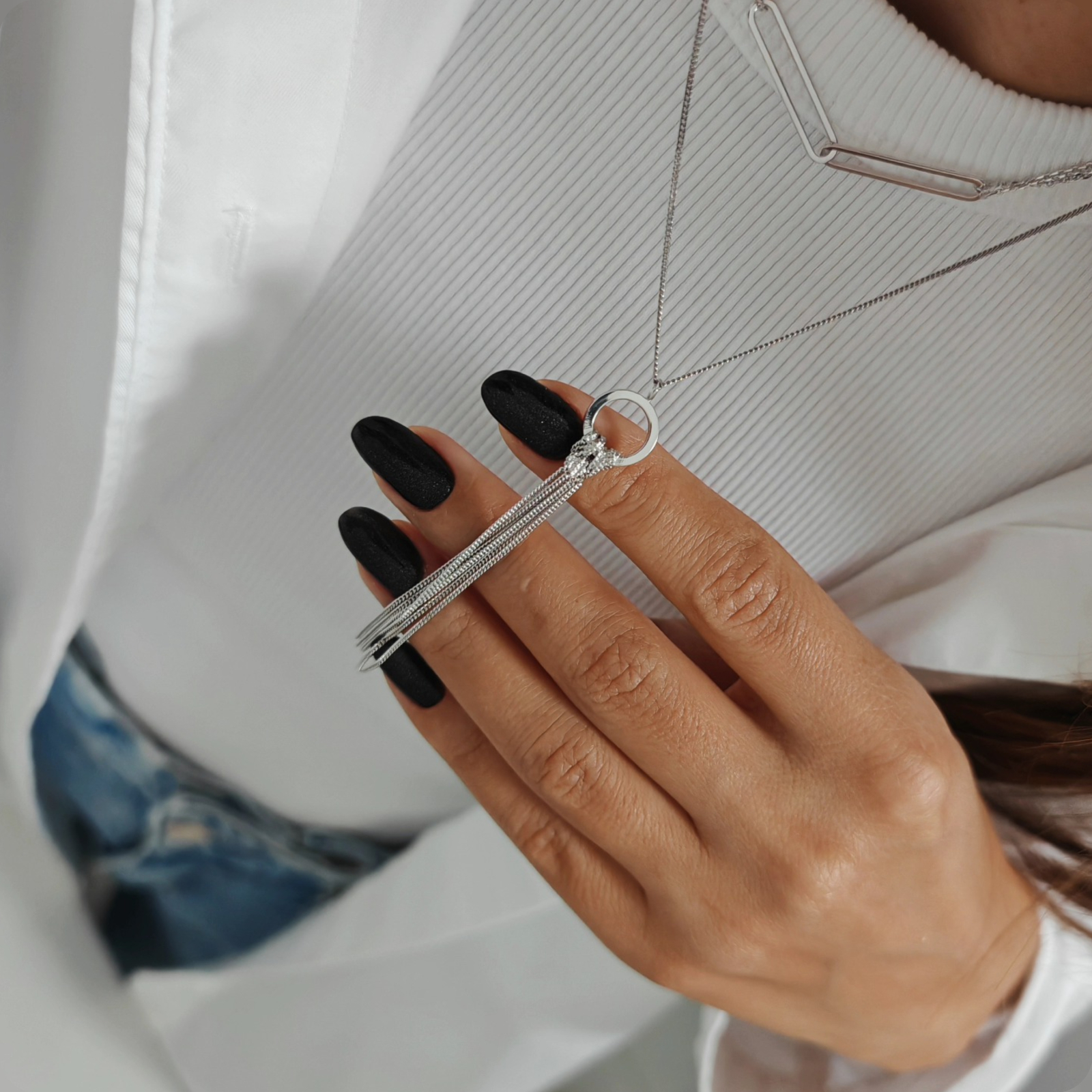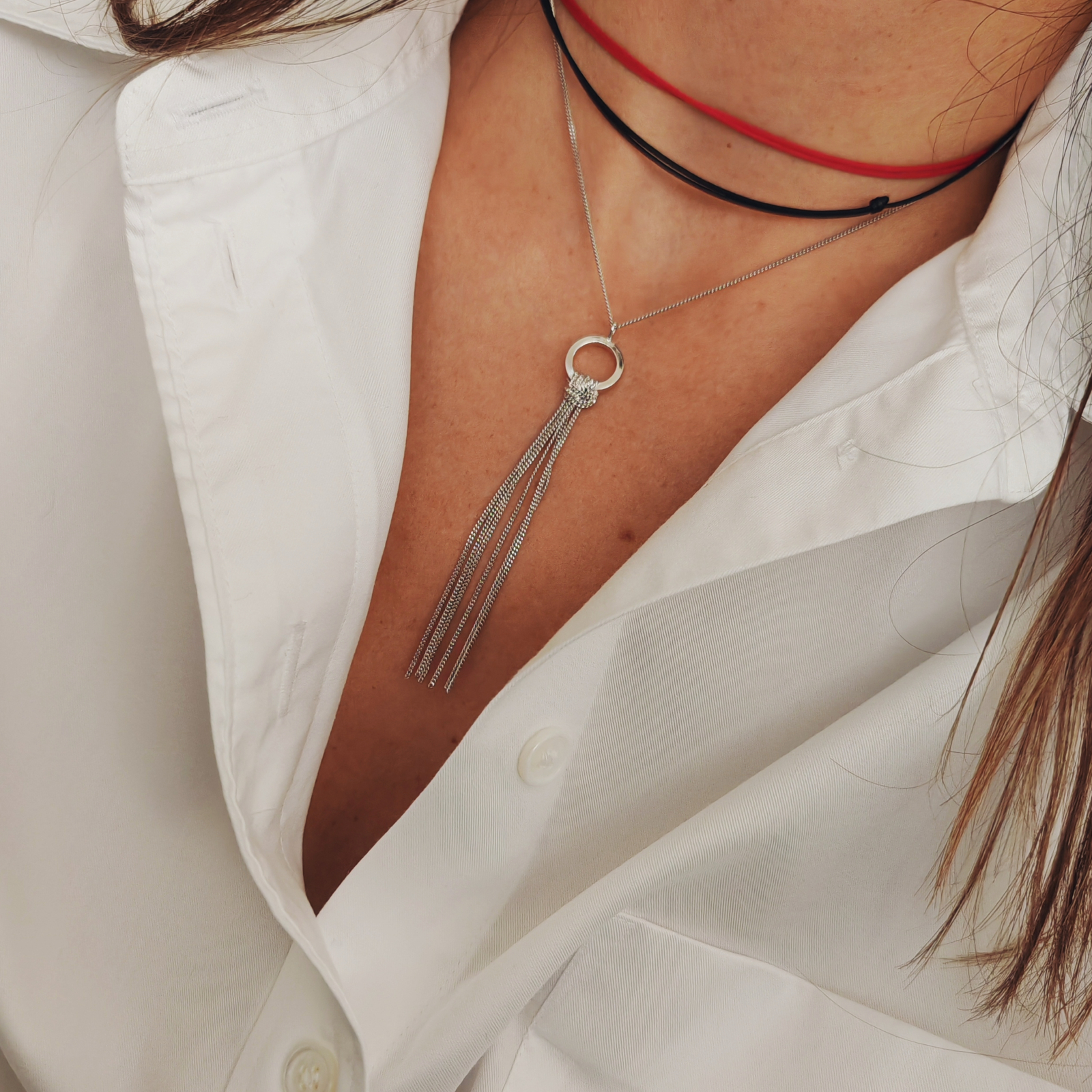 Acest colier lung din argint 925 este usor de purtat si se potriveste perfect cu alte accesorii, fara a le eclipsa. Lungimea generoasa permite purtarea in straturi sau ca piesa statement, fiind ideal pentru femeile care apreciaza stilul elegant si contemporan.