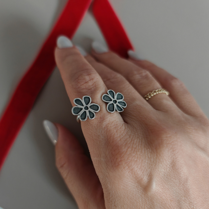 Acest inel deschis din argint 925 antichizat impresionează printr-un design floral delicat, inspirat din eleganța naturală. Detaliile atent lucrate oferă un aspect rafinat și feminin, fiind potrivit pentru purtare zilnică sau pentru a completa o ținută specială.