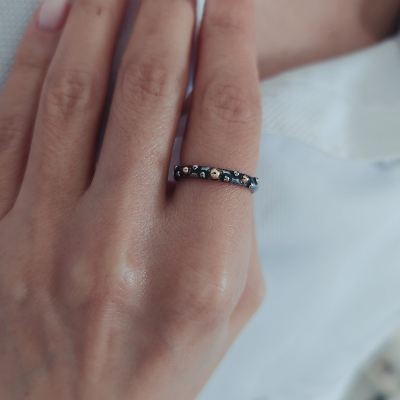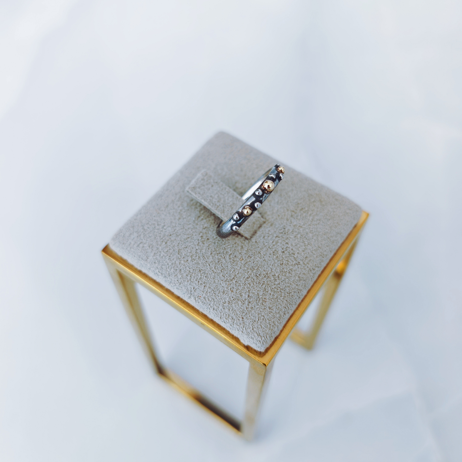 Minimalist, modern si usor de purtat zi de zi — acest inel geometric este creat pentru cei care apreciaza eleganta discreta si detaliile fine din aur si argint.