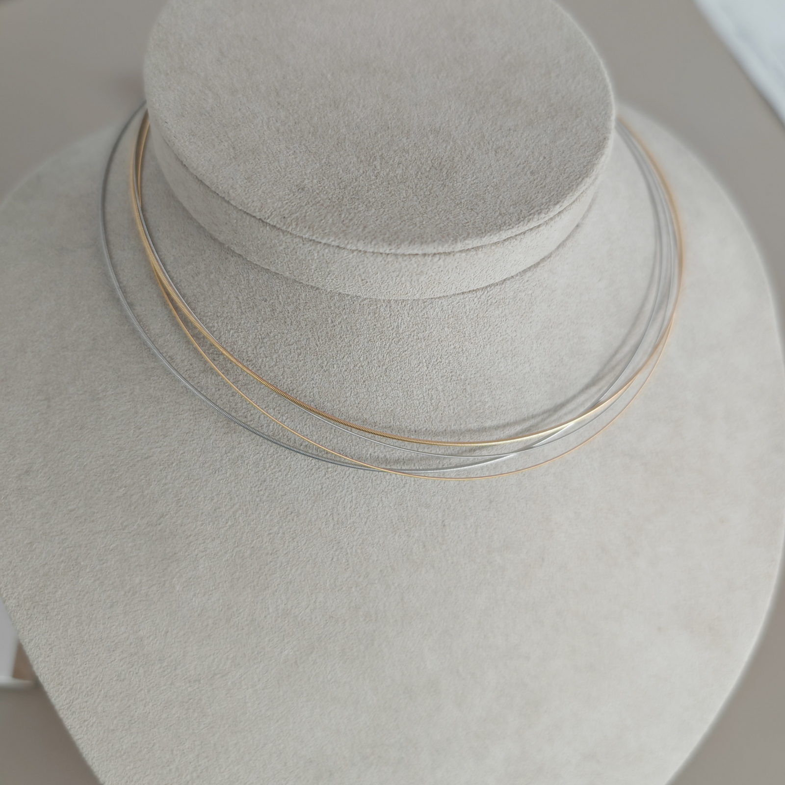 Acest colier este rezultatul unei tehnologii avansate de micro-engineering, în care precizia milimetrică întâlnește eleganța designului minimalist. Structura sa este construită pe o spirală elastică de înaltă performanță, integrată într-o arhitectură internă stabilizată de un miez din oțel inoxidabil, conceput pentru memorie de formă și rezistență în timp.