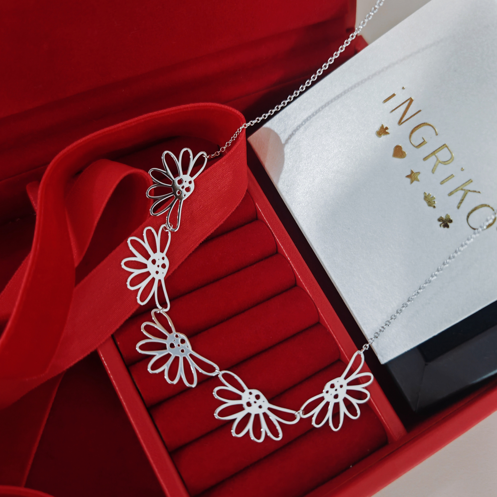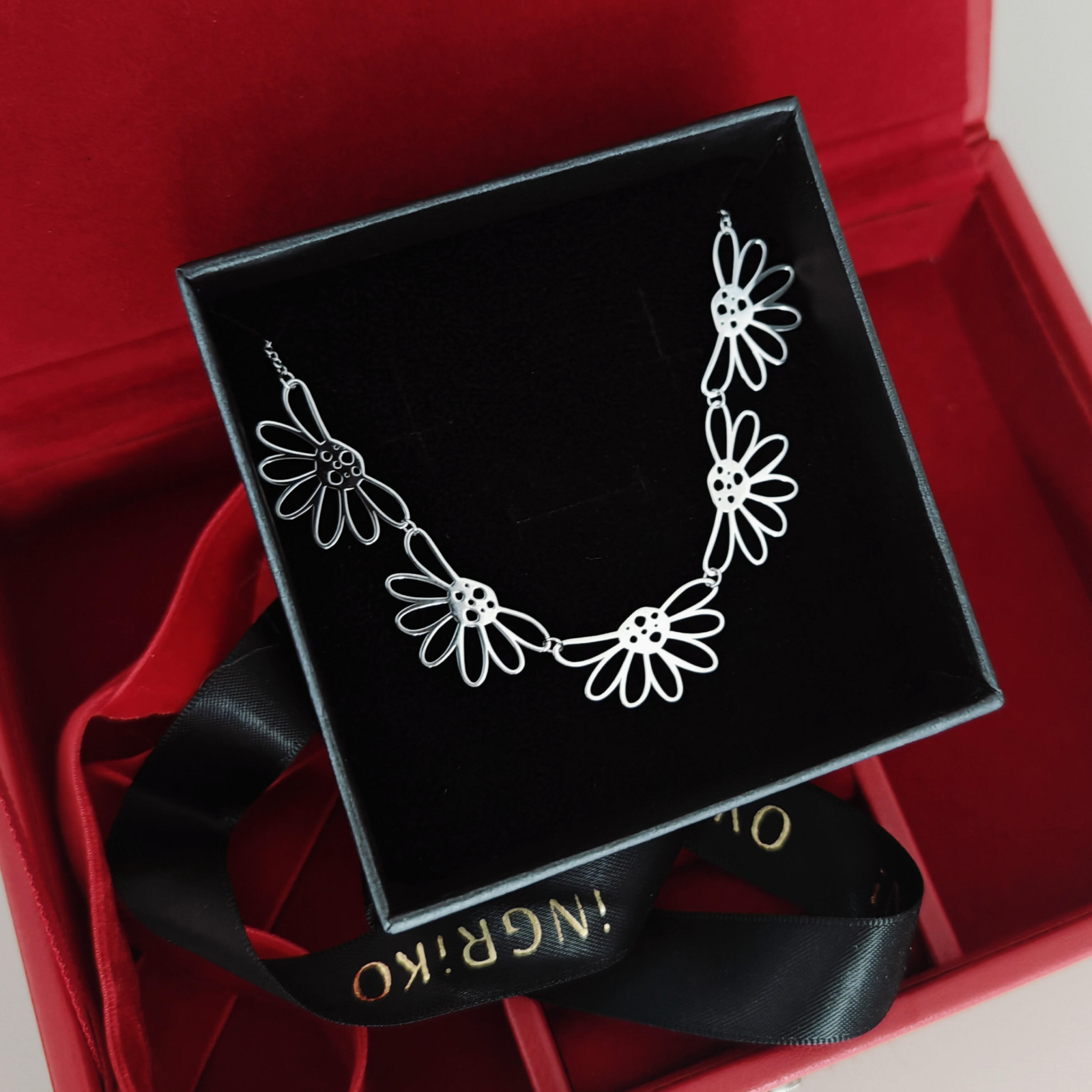Acest colier este realizat din argint 925 de inalta calitate, cu finisaj rodiat pentru un plus de stralucire si rezistenta in timp. Modelul Flora inspira naturalete si delicatete, fiind usor de integrat in orice stil vestimentar.
