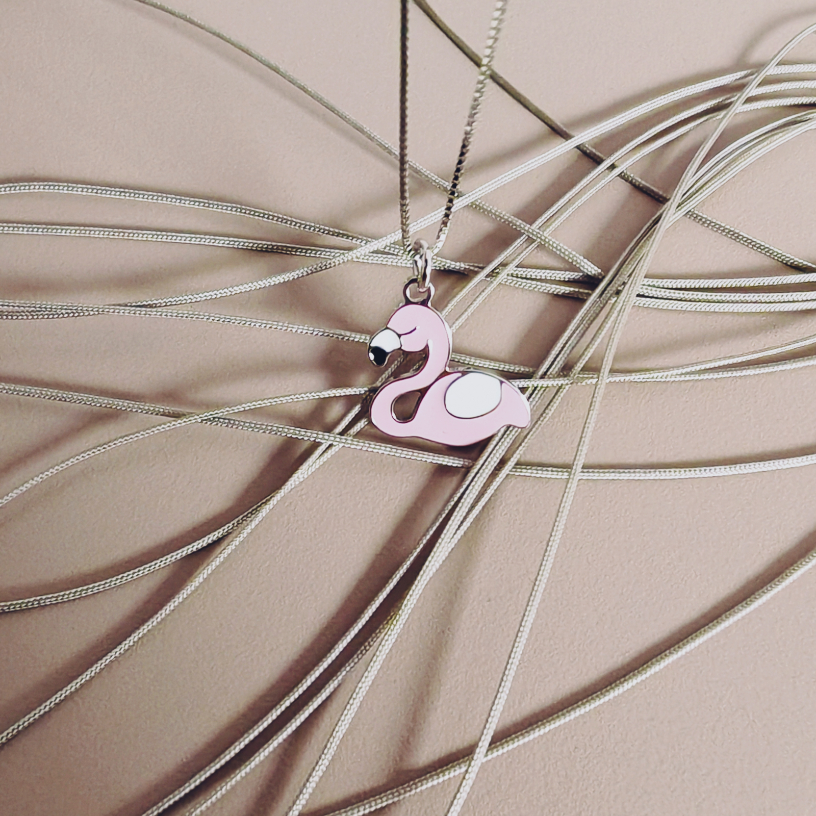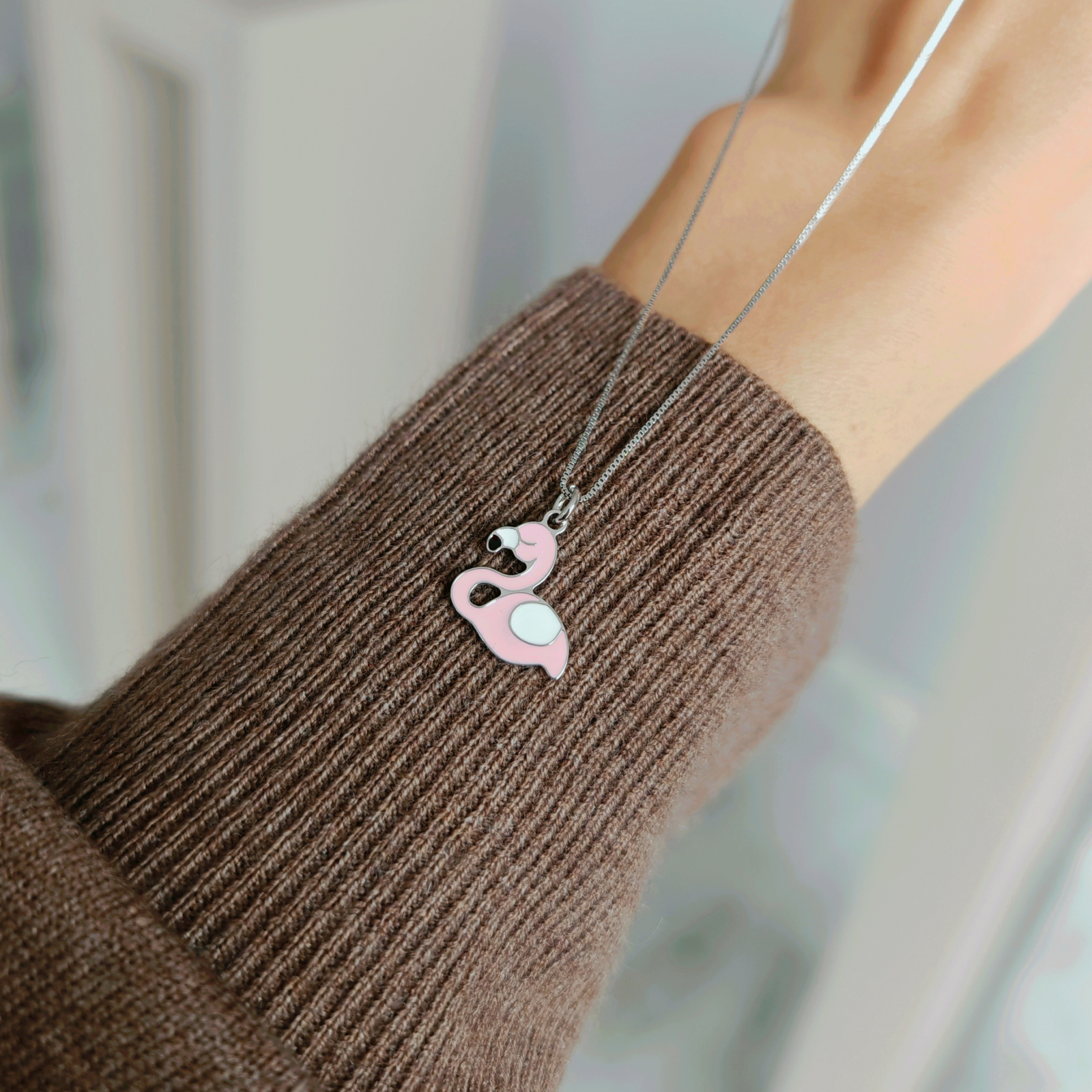 Pandantivul in forma de flamingo roz ofera un accent plin de culoare si energie pozitiva, fiind un detaliu adorat de copii.