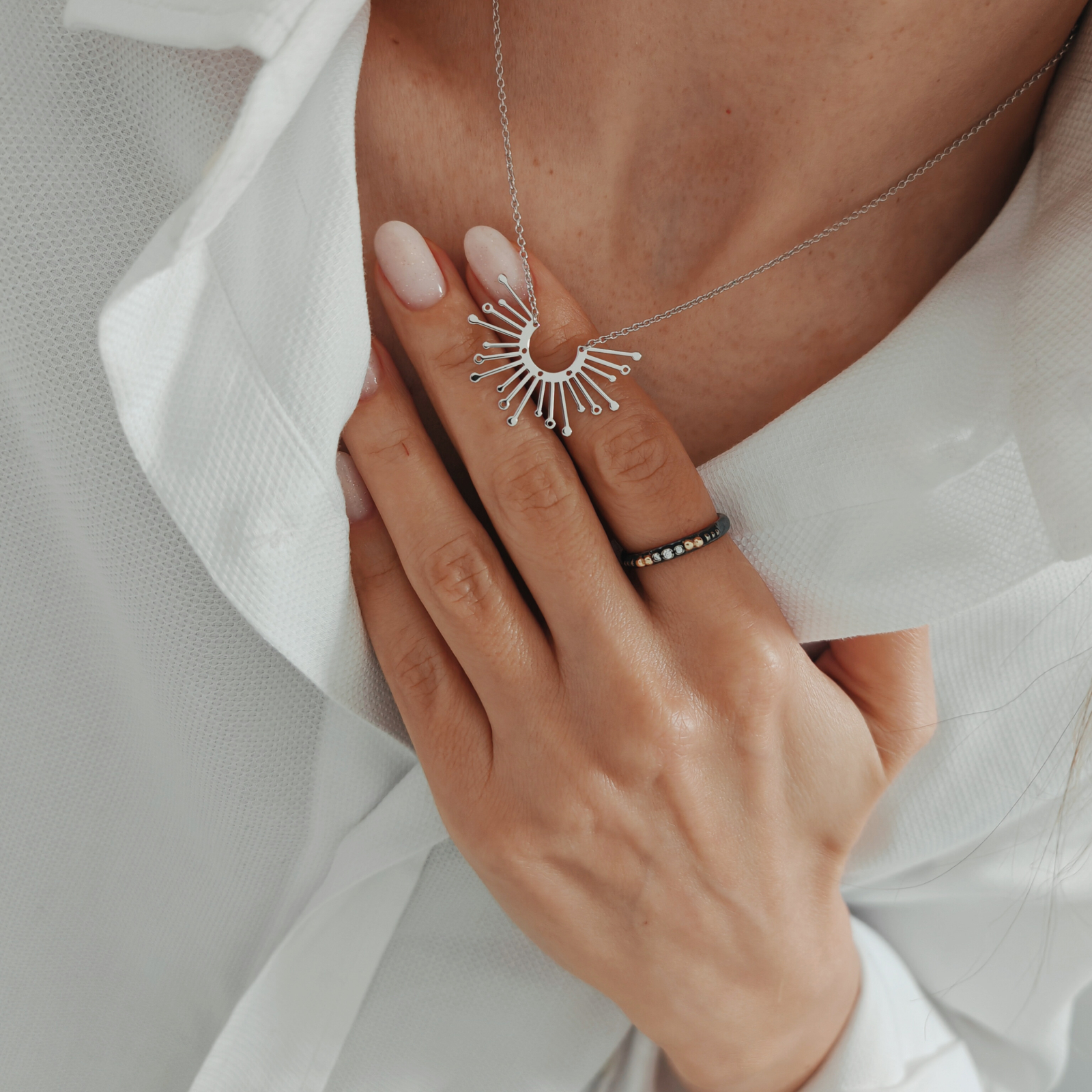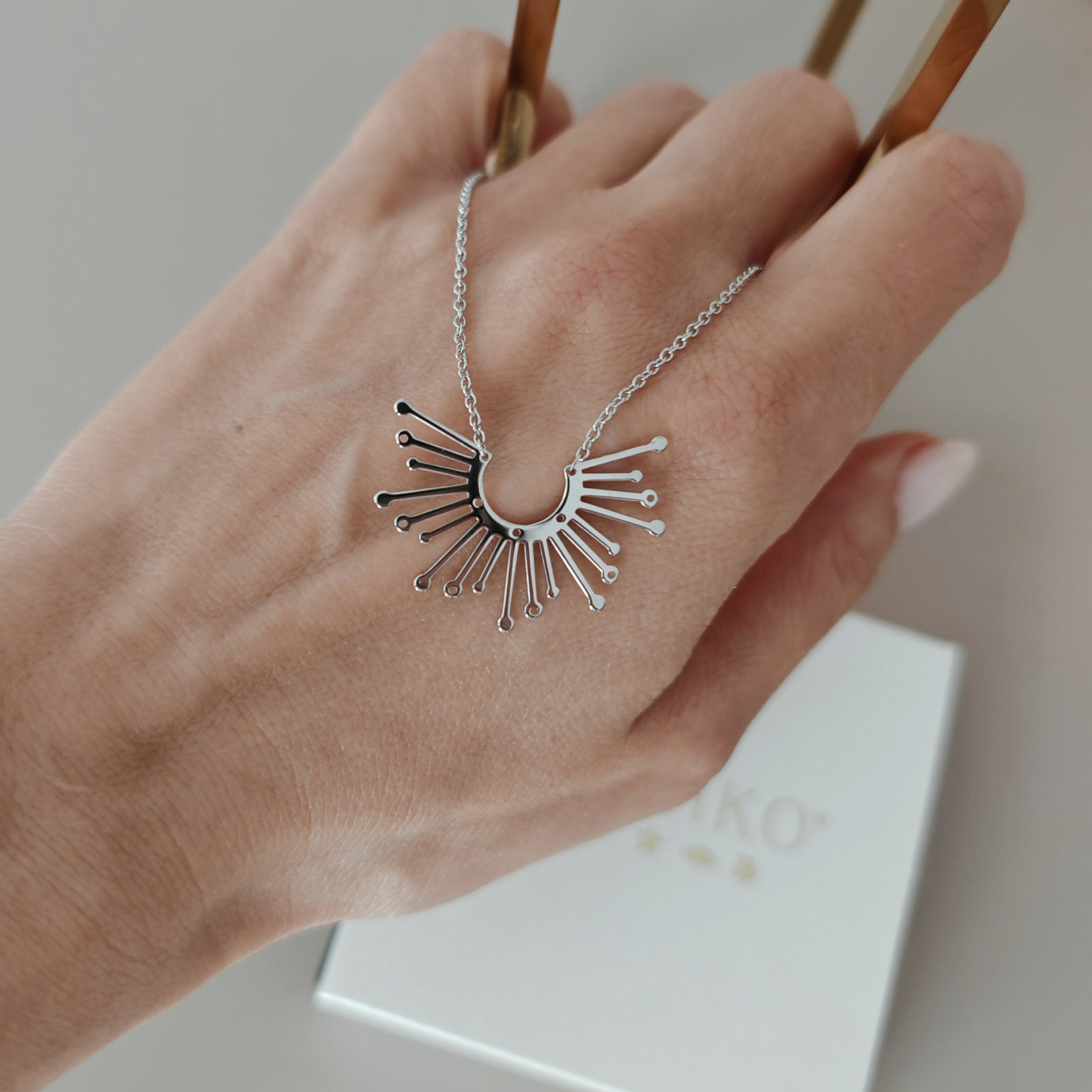 Este alegerea perfecta pentru femeile care iubesc bijuteriile simbolice, modelele delicate si accesoriile versatile. Lantisorul soare din argint 925 rodiat completeaza frumos orice stil si adauga o nota subtila de rafinament.