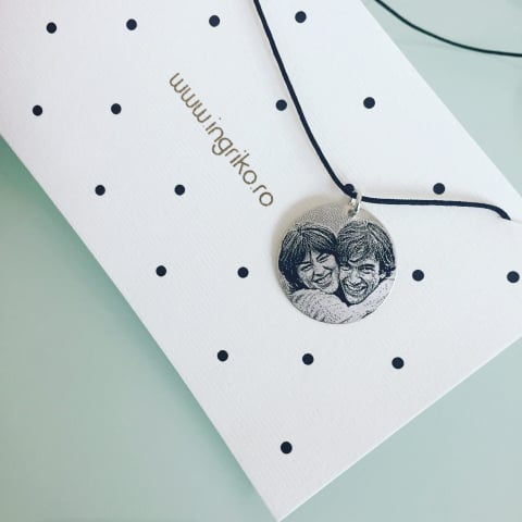 Pandantivul are 22mm si este montat pe snur reglabil, pentru gat. Bijuteria Pandantiv personalizat cu poza argint 925 ajunge la destinatie in cutiua iNGRiKO, impreuna cu certificatul de calitate. Factura se trimite doar in format electronic, pe email.