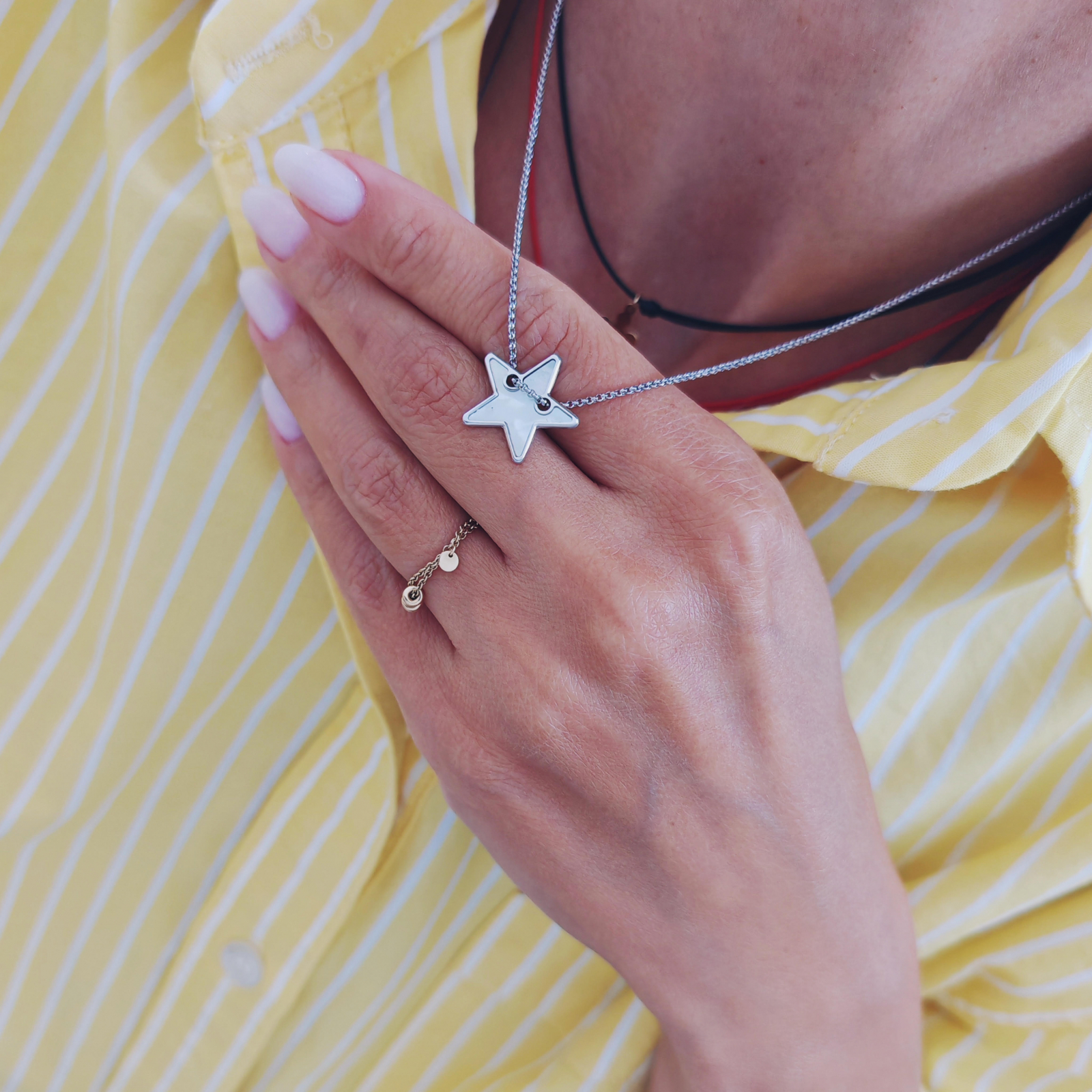 Acest lantisor din argint rodiat cu steluta sidef nu este doar un accesoriu elegant, ci si un simbol al rafinamentului si al armoniei. Perfect pentru purtarea zilnica sau pentru a fi oferit cadou unei persoane dragi, combina designul delicat cu proprietatile naturale ale sidefului, oferind o experienta unica de frumusete si echilibru.